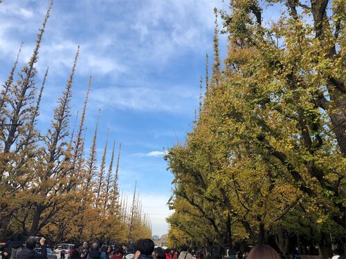 今年はこの日曜日に神宮外苑の銀杏並木を観にいってきました。 毎年観に行っていますが、今年の人出も例年並みといった感じでした。 昼過ぎぐらいだったせいか、3世代で訪れている家族連れが多い印象でした。 「いちょう祭り」も例年は賑わう軟式の球場も工…