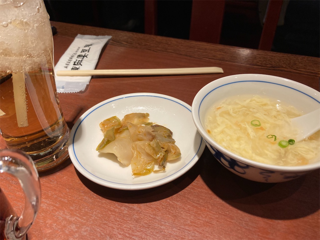 私がオーダーしたのは「エビチリ定食」(1,100円・税込)とミニ麻婆豆腐(300円・税込)で友人がオーダーしたのが「回鍋肉定食」(1.100円税込)とやはりミニ麻婆豆腐でした。