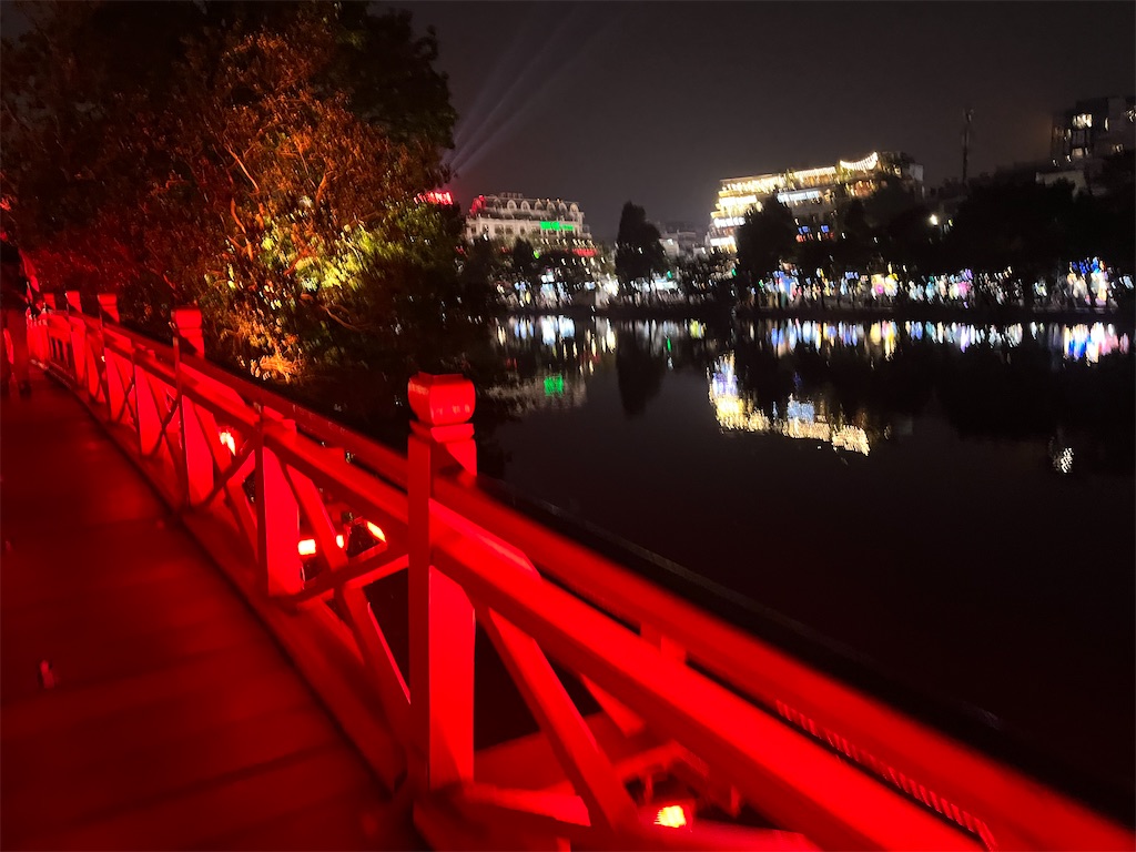 ↑ キラキラと輝くホアンキエム湖の夜景です